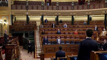 El aviso de que el PP le buscará las vueltas a Sánchez cuando amaine la crisis fue rotundo. “Pediremos una comisión de investigación y en ella las actas de las reuniones del comité de expertos científicos en los que dice apoyarse el Gobierno, y sabremos si hubo ocultación de datos e incluso negligencia”, avisó el líder popular. En términos penales, la negligencia de un cargo público lleva consigo una actuación judicial. “Apoyamos al Gobierno para salvar vidas, pero no para arruinar a España”, dijo. “¿Cómo puede querer un gran acuerdo si ni siquiera nos llama para acordar los decretos?”, cuestionó. Ese reproche fue repetido por casi todos los portavoces, aunque con matices.