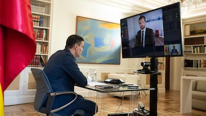 En su primera reunión telemática durante la crisis, Sánchez, ha hecho llegar este lunes a Casado una propuesta detallada con fechas, componentes y grupos de trabajo de la mesa de reconstrucción para empezar mañana mismo a trabajar. Casado no contestó con no, sino con la exigencia de que se reconvierta en una comisión parlamentaria, un formato en el que la oposición tiene mucho más control. Y el presidente aceptó la idea, aunque ahora hay que negociar los detalles.