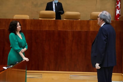 Pero no todo el partido va en esa línea. La presidenta de la Comunidad de Madrid, la más casadista de las líderes regionales —ni Moreno ni Bonig ni Mañueco apoyaron al actual líder del PP en las primarias—, detalló las razones que dificultan que llegue a buen puerto la propuesta de pactar unos presupuestos regionales de emergencia, lanzada por Ángel Gabilondo, líder del PSOE en la comunidad. Tras mostrarse abierta al diálogo, Ayuso defendió la necesidad de liberar suelo para apostar por el sector de la construcción, abogó por mantener impuestos bajos, y aseguró que era fundamental perseverar en la colaboración público privada, asuntos todos ellos que le separan de los socialistas. Díaz Ayuso, además, aprovechó su primera intervención en la Asamblea de Madrid desde el 5 de marzo para insistir en las críticas que viene haciéndole al Gobierno de Pedro Sánchez por su gestión de la crisis sanitaria: “Nos están llevando a una situación sin salida”, dijo.