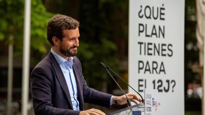 El líder del PP, Pablo Casado, que ha participado en seis actos con Iturgaiz— frente a dos con el candidato gallego, Alberto Núñez Feijóo—, ha defendido a Felipe VI, “una persona intachable, un patriota”, y ha acusado al Ejecutivo de coalición de no defender a la Corona por cálculos electorales. “Cuando un vicepresidente de España [refiriéndose a Pablo Iglesias] y una vicepresidenta del Congreso de un partido [en alusión a Gloria Elizo, de Podemos] que forma parte del Gobierno llaman a un referéndum y piden la abdicación del Rey, no se puede tolerar que el presidente del Gobierno no defienda al jefe del Estado. Exijo a Pedro Sánchez que salga a decir que no pide ni la abdicación ni el referéndum. Este Gobierno va contra la jefatura del Estado desde el Palacio de la Moncloa. Y le digo al vicepresidente de Sánchez que la inutilidad, la corrupción, los privilegios, la impunidad y el nepotismo que critica de la Monarquía es exactamente lo que caracteriza a Iglesias”. “Esto no va contra el Rey, esto va contra el sistema democrático constitucional, contra ese candado del régimen del 78 que dicen que hay que quitar, las finalidades políticas que, en sus palabras, tenía la lucha armada de ETA, contra el Estado de derecho y la unidad nacional. Todo eso se vota el 12 de julio”, ha concluido el líder del PP para pedir el voto en Euskadi.