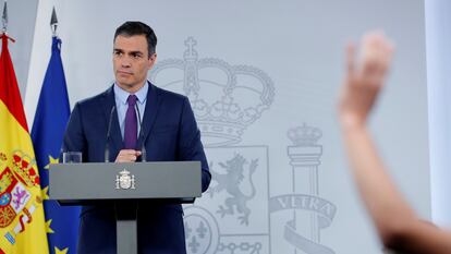 El presidente del Gobierno, Pedro Sánchez, ha comparecido este martes en La Moncloa tras el Consejo de Ministros para hacer balance de los últimos seis meses del Ejecutivo. En la rueda de prensa, la decisión del rey emérito de abandonar España ―y las divisiones que ha generado entre los socios de Gobierno― ha acaparado las preguntas, pero antes y durante casi 40 minutos, el jefe del Ejecutivo ha aprovechado para defender su gestión durante la crisis del coronavirus, sin hacer autocrítica, y advertir a sus rivales, como ya hizo la semana pasada en el Congreso, que la legislatura será “larga”. Al tiempo, restó importancia a las diferencias entre los partidos que ocupan La Moncloa: “Estoy muy orgulloso de cada uno de los ministros”, señaló.