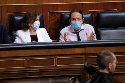 La situación de Juan Carlos I ha abierto una brecha en el Gobierno de coalición. Pedro Sánchez y la vicepresidenta Carmen Calvo han tratado de cerrarla, pero Unidas Podemos mantiene perfil propio. Aunque sin romper. El presidente del grupo de Unidas Podemos en el Congreso, Jaume Asens, calificó este jueves de desleal al presidente por no contar con sus socios en esta crisis. Y adelantó que su formación, además de pedir la comparecencia de Felipe VI en el Congreso, llevará a las Cortes la celebración de un referéndum sobre el modelo de Estado y medidas para “controlar” a la Casa Real.