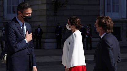 Sánchez y Díaz Ayuso se ven por primera vez tras el estado de alarma y los ministros de Podemos acuden a su primer 12 de octubre con los Reyes