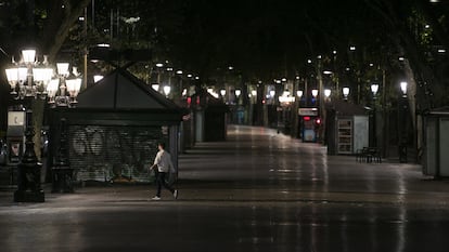 La Rambla es el lugar más bullicioso de la ciudad de día y más canalla de noche. No se veía un alma. Tampoco en el barrio pescador de la Barceloneta. El primer toque de queda en Barcelona se ha convertido en una copia de la primavera más inquietante y silenciosa que sufrió la ciudad.