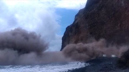 Un derrumbe en un acantilado sepulta varias caravanas en La Gomera