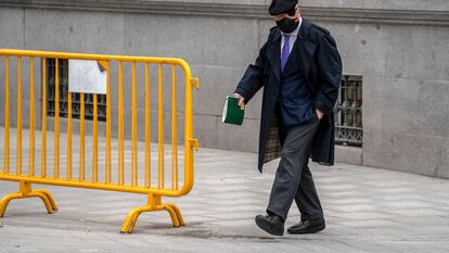 Vestido con chaqueta y abrigo oscuro —y gorra, mascarilla y parche negro en el ojo, fruto de un problema médico que sufrió en prisión—, Villarejo ha llegado a la Audiencia sobre las diez de la mañana. Dos horas después, ha salido del edificio tras declarar ante Manuel García-Castellón, el juez que instruye la causa: “Hoy empieza para mí el punto cero. Hoy voy a poder defenderme. Este era mi ordenador hasta hoy: una libreta y un papel. Y creo que he puesto nervioso a más de uno. Que yo no lo pretendo”.