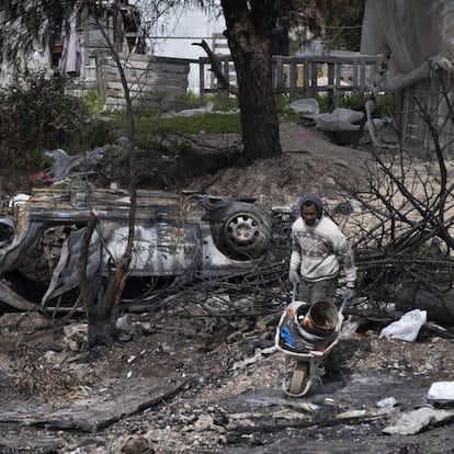Hmaimsa es un ejemplo de que hay futuro más allá del barro de las calles de chabolas. El albergue de Diop es otro atisbo de esperanza. Mientras, en los paisajes chamuscados en los que se han convertido los poblados de Palos y Atochares casi un mes después de sus incendios, a media mañana, solo se oye el repiqueteo de martillos ensamblando palés o las palas mezclando cemento. Camara y Fousseynu deambulan sin rumbo entre famélicos andamios que evidencian la voluntad de sus vecinos de permanecer ahí ante la falta de alternativas. Es un mísero armazón de frágil madera que ni siquiera se pueden permitir estos dos amigos malienses. “¿Podrás conseguir que nos ayuden a levantar nuestra chabola?”, preguntan junto a su parcela calcinada.
