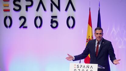 El presidente del Gobierno, Pedro Sánchez, ha presentado este jueves el proyecto estratégico España 2050, con el que el Ejecutivo pretende abrir una reflexión colectiva y plural sobre los retos de futuro del país tras la pandemia. “La visión del futuro debe ser de Estado y no del Gobierno. Nos ocupa el presente, pero también tenemos que preocuparnos del futuro”, ha afirmado Sánchez. “Dialoguemos para decidir qué país queremos ser en 30 años”, ha emplazado el presidente. El plan plantea imponer tasas a los vuelos cortos, prohibir aquellos que se pueden contemplar en menos de dos horas y media, o imponer un impuesto que grave el uso que se le dé al coche. Los 100 expertos que han asesorado a La Moncloa proponen que la semana laboral se reduzca progresivamente hasta las 35 horas de aquí a 2050, entre otras propuestas. El Ejecutivo señala que este informe aborda retos como los efectos económicos y sociales de la pandemia, el cambio climático, la digitalización, el envejecimiento, la cohesión social y la igualdad entre hombres y mujeres.