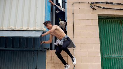 En la tarde del viernes EL PAÍS ha presenciado la huida de al menos una decena de chiquillos. “Me siento humillado”, dice Reduan, de 14 años, antes de escaparse de la nave por el hueco de una pared. “Antes no quería volverme a Marruecos, pero ahora ya no lo sé”. El niño llegó al recinto el miércoles, nada más salir del mar, con la ropa aún mojada. Era la segunda vez que cruzaba a Ceuta a nado. “Vine el lunes nadando y el martes me devolvieron a Marruecos”, contó recién salido del mar por segunda vez. “Pasamos hambre”, cuenta Ilis, también de 14 años, que escapa con él. “Nos vamos a pedir comida. Aquí no hacemos nada, nos tienen todo el día sentados en el suelo. Cuando nos levantamos nos mandan sentarnos otra vez”, se queja.