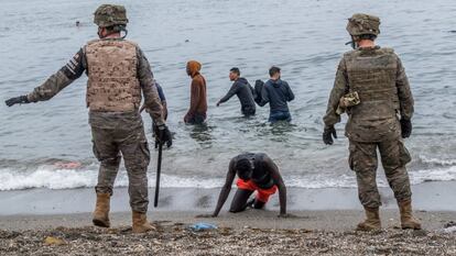 Una marea humana se abatió el pasado lunes sobre Ceuta. Primero fueron decenas de personas. Luego cientos. Al cabo de 36 horas, casi 8.000. Niños, adolescentes, familias enteras se arrojaban al mar para rodear el espigón que separa Marruecos de la playa del Tarajal, ante la mirada complaciente de su policía y la alarma de la española. Al menos dos hombres se ahogaron.
