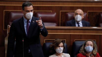 La respuesta del presidente ha avivado el ataque del líder del PP y le ha dado pie a sostener, como viene haciendo desde las elecciones madrileñas, que el Gobierno se encamina hacia su final: “Esto será su finiquito y el epitafio del PSOE en la España constitucional. Se le está acabando el tiempo”. Casado ha anunciado una ofensiva “hasta las últimas consecuencias” para frenar las medidas de gracia. Ha reiterado que el PP recurrirá al Tribunal Supremo y ha prometido una batería de reformas legales si llega al Gobierno para endurecer las penas por actuaciones como las de los independentistas condenados. “No consentiremos que lo vuelvan a hacer, ni los golpistas ni usted”, ha concluido.
