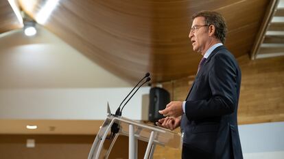 No es la primera vez en los últimos tiempos que Alberto Núñez Feijóo marca perfil propio ante Pablo Casado. Al contrario, el presidente de la Xunta de Galicia ha dejado más veces mensajes que puntualizaban las declaraciones o decisiones del líder del PP, como cuando receló del abandono (aún no ejecutado) de la sede del PP en Génova, 13: “Del pasado no se reniega, se aprende”, dijo entonces con intención. Este martes, el barón gallego ha enmendado las polémicas palabras de Casado sobre la Guerra Civil en el pleno del miércoles pasado, que han indignado a historiadores y han chirriado en el sector moderado del PP. El líder del PP describió la contienda como “un enfrentamiento entre quienes querían la democracia sin ley y quienes querían la ley sin democracia”, pero el presidente gallego ha hecho énfasis en que la guerra “fue un golpe de Estado”.