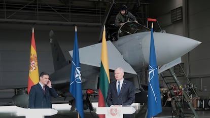 Estaba previsto un simulacro. Así que todos, incluidos los dos presidentes, el español, Pedro Sánchez, y el lituano, Gitanas Nauseda, empezaron tranquilos pensando que solo era eso. Incluso algunos mandos militares lo creían. Pero entonces el piloto del Eurofighter, el avión de combate de élite del ejército del aire español, gritó a sus mandos: “¡Es alfa! ¡Es alfa!”. En el código militar, esto implica una operación real, mientras “tango” sería una maniobra o un simulacro. “Es una alerta real”, empezaron a aclarar algunos militares. El presidente lituano parecía divertido, pensando que era un simulacro o muy acostumbrado a estas situaciones, dado que vive en un país en permanente tensión con Rusia y Bielorrusia, sus problemáticos vecinos. Sánchez tuvo que avisarle de que había que suspender la comparecencia que estaban protagonizando. “No, presidente, hay un Alfa Scramble”, le dijo el español al lituano, ya en código militar. En pocos minutos –unos 12– el hangar que este jueves se había convertido en un decorado para la comparecencia con banderas, equipos de sonido, cámaras, traductores, periodistas y soldados en formación, se vació para que salieran disparados dos Eurofighter a la búsqueda de dos cazas rusos que sobrevolaban el cielo báltico sin autorización y sin responder a las llamadas de los controladores de la OTAN.