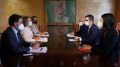 En la reunión de este martes entre el Gobierno y el PP en el Congreso han participado por parte del Ejecutivo el ministro de la Presidencia, Félix Bolaños; el secretario de Estado de Relaciones con las Cortes, Rafael Simancas, y la directora general de Relaciones con las Cortes, Mercedes Cabrera; y por parte del Grupo Parlamentario Popular la portavoz, Cuca Gamarra; el secretario general, Guillermo Mariscal, y la secretaria general adjunta, Isabel Borrego. La cita no fructificó en nada aunque desde ambos bandos se tachó de “cordial”.