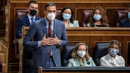 El nombre de ETA siguió chisporroteando a lo largo de toda la sesión, pero sorprendentemente no apareció en el discurso de Abascal. De un tiempo a esta parte, el líder de Vox dedica sus escasas intervenciones en el Congreso a relatar, con todo lujo de detalles escabrosos, escenas de una España asolada por una multitud de yihadistas y de menores extranjeros que agreden y violan impunemente. Esta vez pidió a Sánchez que se pusiese en el lugar de “esos padres a los que les llega a casa su hijo acuchillado o su hija violada por esos inmigrantes ilegales a los que ustedes llaman”. Frente al espeluznante relato de Abascal, los datos del presidente: los robos con violencia han descendido este año un 32,8%.