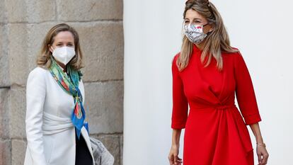 En la semana hubo una reunión pública, varias discretas y un inusitado movimiento de llamadas en las que se trenzaron relaciones muy poco habituales. El martes, el día clave, con el PSOE muy molesto con Díaz, que rechazaba que Calviño entrara en una negociación que Trabajo lleva siete meses gestionando con mucho esfuerzo, se produjo un acercamiento inesperado. Félix Bolaños, el negociador clave de Sánchez, buscó a Irene Montero y Ione Belarra, de Podemos, habitualmente más duras que Díaz, porque los socialistas las vieron en posiciones más suaves, según fuentes del PSOE. Finalmente, desde Roma, donde estaba de viaje, Díaz cerró la negociación con Bolaños y hubo acuerdo ya el miércoles.