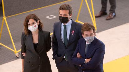 El alcalde de la capital no ha desvelado aún sus intenciones, pero ha pasado de renunciar a la batalla por liderar la organización —“no entra en mis planes presentarme a presidente del PP de Madrid”, dijo en abril— a dejar la puerta abierta —“las decisiones que tenga que tomar serán en el momento que correspondan, que es cuando se convoque el congreso”, dijo este martes—. Hasta ahora, Almeida ha actuado alineado con la dirección nacional, y según fuentes de su entorno está a la expectativa de lo que decida Génova. En principio, hará lo que le pida Casado que haga.