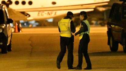 Otra viajera, María, tenía que ir a Menorca con su marido y su bebé cuando se enteró por un mensaje de la aerolínea de que su vuelo había sufrido un retraso. “Iberia nos ha comentado lo que ha pasado con el vuelo, que han bajado personas del avión y que la Guardia Civil se había desplegado por las pistas”, señaló. Peter, que volaba a Barcelona, se fue del aeropuerto ante la incertidumbre de la situación. “Nos han dicho que lo mismo tardan una hora, que dos, que cuatro”, decía.
