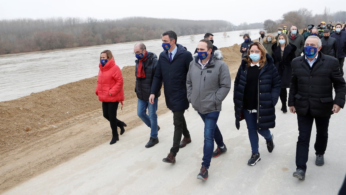Pedro Sánchez evalúa los daños de la crecida del río Ebro en Aragón, Navarra y La Rioja