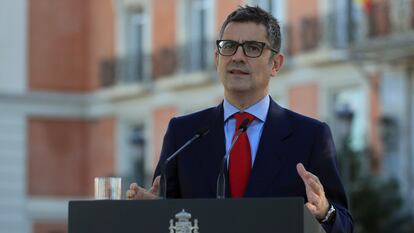 El ministro de Presidencia ha defendido este martes la reforma laboral recientemente pactada con patronal y sindicatos y cuyos apoyos negocia ahora el Gobierno para sacarla adelante en el Congreso. “No queremos que esa norma sufra ninguna modificación porque se trata de un acuerdo entre los agentes sociales, entre empresarios y sindicatos”, ha destacado Bolaños. La ministra de Hacienda, María Jesús Montero, confió este lunes, en declaraciones a periodistas realizadas en Sevilla, en que el texto del acuerdo de la reforma laboral permaneciera “inalterado en la medida de lo posible” tras el paso por el Congreso. Sin embargo, Montero se abrió a tramitarlo como proyecto de ley, un camino que permitiría presentar enmiendas en la cámara Baja y en el Senado. El ministro Bolaños ha cerrado esta vía al asegurar que “no tiene por qué tramitarse como proyecto de ley”. “Se puede votar a favor del texto y así convalidar la vigencia que la reforma laboral ya tiene en este momento”, ha añadido.