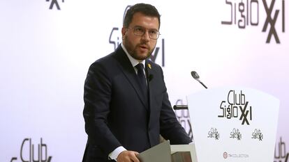 Ante una sala a rebosar, la exalcaldesa Manuela Carmena ha sido la encargada de presentar este miércoles en Madrid al president de la Generalitat, Pere Aragonès, protagonista de un acto organizado por el club Siglo XXI. Durante su conferencia, el líder catalán ha hecho balance de su gestión al frente de la Generalitat y ha incidido en la pretensión de su Gobierno para lograr la “independencia” de Cataluña. El dirigente de ERC ha dejado de lado el debate sobre cuándo se celebrará la mesa de diálogo sobre el problema político territorial para pedir expresamente a La Moncloa una consulta de autodeterminación. “El referéndum es necesario. Nos debemos atrever a proponer nuestra propuesta a la ciudadanía de Cataluña. La ciudadanía está dispuesta a aceptar el resultado de las urnas. El derecho a la autodeterminación de Cataluña es inevitable”, ha subrayado Aragonès en el evento, al que también ha acudido la ministra portavoz, Isabel Rodríguez, y el ministro de Universidades, Joan Subirats.