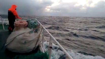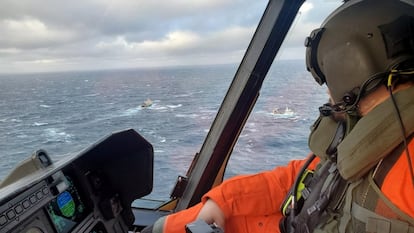 Al estado del mar se unen las bajas temperaturas, que han alcanzado los siete grados bajo cero —con una sensación térmica de menos 17 grados— y un viento de 30 nudos desde el oeste (56 kilómetros por hora). La única nota positiva en cuanto a la meteorología ha sido la visibilidad, que ha mejorado con respecto al martes, cuando había mucha niebla. Sotelo explica las complicaciones que también tuvieron por la noche, cuando los navíos abandonaron la zona por la mala visibilidad y el miedo a que el aparejo del Villa de Pitanxo, que todavía no ha sido localizado y del que se desconocen los motivos del naufragio, chocara y se envolviera con las hélices de los otros buques: “Si eso pasa, ya te quedas sin máquina, no te puedes mover”. Con la mar embravecida, la situación está estancada y no hay avances: “El mar fai ovellas [hace ovejas, en castellano, una expresión marinera para referirse a la espuma blanca que crea el choque intenso de las olas]. No encontramos nada, de momento somos incapaces”, cuenta Sotelo.