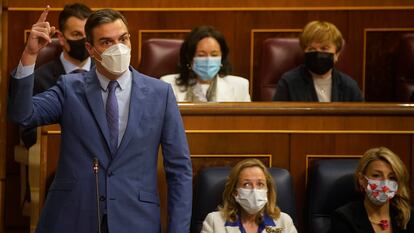 La pregunta que reverberó durante hora y media en el hemiciclo fue la misma, ya estuviera dirigida al presidente o a sus ministros, ya proviniera de la izquierda, del PP, de Vox o de Ciudadanos: ¿qué está haciendo el Gobierno? Sánchez recurrió a un abanico de verbos en sus respuestas. A Gamarra le contestó que “trabajar en Europa”. A Gabriel Rufián, de ERC, le dijo que “hablar”. Y a Errejón, que “dialogar”. El presidente echó por delante las circunstancias “extraordinariamente complejas” que le ha tocado afrontar a este Gobierno, ahora la “guerra de Putin”, como antes la pandemia o el volcán de La Palma, menciones que levantaron murmullos en los escaños del PP.