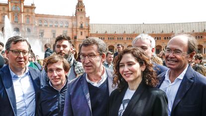 Además de Feijóo, que ha sido ratificado como nuevo presidente del PP con el 98,35% de los votos emitidos, otra de las más aclamadas ha sido la presidenta de la Comunidad de Madrid, Isabel Díaz Ayuso. La dirigente llegó rodeada por una melé de periodistas mientras se prestaba para las fotografías que le pedían los ayusers a las puertas del palacio de Congresos de Sevilla.
