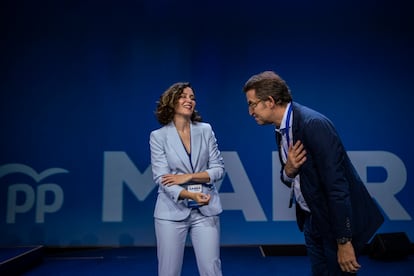 Alberto Núñez Feijóo ha sido convocado este sábado al escenario del congreso del PP de Madrid como el hombre que “hace temblar” de miedo a Pedro Sánchez. Las encuestas sonríen al nuevo líder del partido, que se ha olvidado rápido de Pablo Casado y disfruta de una inusual paz entre la planta primera y la séptima de la sede de Génova, o sea, entre la dirección de la formación en Madrid y la nacional. Pero si, por lo que fuera, por ejemplo, el aire acondicionado, un turista despistado hubiese entrado esta mañana en el pabellón de Ifema donde se celebraba el cónclave y hubiera escuchado los discursos de clausura de Feijóo y Ayuso, seguramente no habría sabido decir cuál de los dos se enfrentará a Pedro Sánchez para ocupar La Moncloa. Es más, probablemente se habría equivocado porque ha sido la baronesa madrileña quien más tiempo ha dedicado a hablar del que no será su rival en las papeletas de las generales.