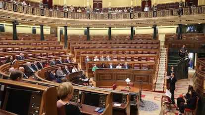 La dirección del PP se ausenta de un pleno casi vacío y Vox sale a la puerta de las Cortes para protestar ante la presencia en el acto de Bildu