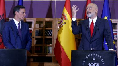 No lejos de allí, en el norte de Kosovo, los disturbios se han reproducido este fin de semana por la decisión de las autoridades de Prístina ―pospuesta in extremis― de imponer a la minoría serbia el uso de matrículas y documentos de viaje de la autoproclamada república. Las tropas de la OTAN, desplegadas en la exprovincia serbia desde 1999, han amagado con intervenir para frenar la violencia. En Tirana, donde ha concluido su gira balcánica, Sánchez ha reiterado hasta en dos ocasiones, no sin disculparse ante sus anfitriones, que España considera que la independencia unilateral de Kosovo vulnera el derecho internacional. El primer ministro albanés ha quitado hierro a la discrepancia, pero ha subrayado que España tiene “sus propias razones” (insinuando que responden a cuestiones de política doméstica) para no reconocer a Kosovo, cuya población es mayoritariamente albanesa y con cuyo Gobierno ha dicho estar “al 100%”.