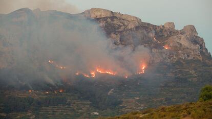 El viento complica el incendio de Vall d’Ebo, que sigue sin control