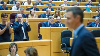 Aquel soñoliento día de agosto en que Alberto Núñez Feijóo emplazó a Pedro Sánchez a debatir en el Senado fue como si el líder del PP se hubiese desabrochado la camisa y ofrecido su pecho descubierto al presidente. El socialista estaba deseando golpear a un contrincante que no ha cesado de comerle terreno en las encuestas, así que no dejó pasar la ocasión y allá se lanzó con todo el martes: con la derecha y con la izquierda, con guante y sin guante, al estómago y a la mandíbula. Sánchez no se cansaba de golpear, volvía una y otra vez, gustándose, enardecido por los suyos, encadenando ironías mientras leía algunos deslices argumentales de Feijóo en los meses que lleva al frente del partido. Así, durante 47 minutos que, en un Senado lleno hasta la bandera, ofrecieron uno de los más extraños espectáculos parlamentarios de los últimos meses. El líder de la oposición quería examinar al Gobierno y el que acabó examinado, analizado, destripado y diseccionado fue él en un debate cuyo formato lo dejó casi inerme frente a un Sánchez desatado.