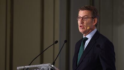 El líder del PP, Alberto Núñez Feijóo, ha admitido este martes que su partido ya no exige que haya una nueva ley para cambiar el modelo de elección de los vocales del Consejo General del Poder Judicial (CGPJ) como “requisito previo” para renovar el órgano, que lleva casi cuatro años en funciones por la negativa de los populares a pactar con el Gobierno un reemplazo, y que ha provocado la reciente dimisión del presidente del CGPJ y del Tribunal Supremo, Carlos Lesmes. “Aceptamos que esa ley la pospongamos para los próximos meses. Creo que es una cesión francamente intensa”, ha manifestado en un acto organizado por el diario El Mundo. Además, al referirse a ese futuro cambio legal, ha suavizado aparentemente el planteamiento inicial del partido: los populares siguen defendiendo que “jueces y magistrados elijan a jueces y magistrados”, pero Feijóo ha matizado en un momento dado que el objetivo es consensuar una fórmula en la que los jueces “tengan peso” en la elección de los jueces o “participen” en ella.