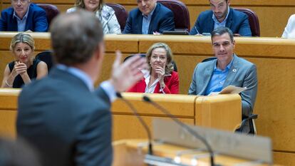 Pero el presidente socialista dejó sin contestar las alusiones personales del líder del PP, y los populares se lo reconocieron. El debate no ha dinamitado las conversaciones para pactar el Poder Judicial, que están muy avanzadas. El martes mismo hubo una nueva reunión, según fuentes populares. “El debate no ha afectado a la negociación”, resumen fuentes del gabinete de Feijóo. “El tono del presidente ha cambiado a mejor porque la última vez le fue mal, obligado por las circunstancias. Que sea por el CGPJ, o porque la otra vez se equivocó, no lo sabemos”, añaden las mismas fuentes. Entre los senadores del PP también se percibió el cambio de tono de Sánchez, aunque algunos dudaban de que el motivo fuera el pacto del Poder Judicial. “Ha estado mejor que la otra vez, más atinado, sin atizar tanto a Alberto. En mi opinión lo ha hecho por estrategia política”, resumía un parlamentario popular. “Creo que ninguno de los dos quiso romper puentes. Se han respetado más”, opinaba otro senador del partido en los pasillos del Senado.