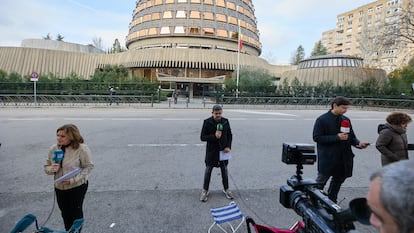 El Tribunal Constitucional ha adoptado este lunes, al filo de las 22.30, una medida insólita en democracia: paralizar la tramitación parlamentaria de una reforma legislativa que desbloqueaba la renovación del propio órgano de garantías. El tribunal ha avalado la petición del PP por seis votos (los magistrados del sector conservador) frente a cinco (los progresistas) y ha suspendido esa tramitación, solo tres días antes de que se votase definitivamente en el Senado la reforma del Código Penal en la que el Gobierno había incluido sendas enmiendas para poder renovar el tribunal de garantías. La izquierda parlamentaria y sus aliados descalificaron sin matices una decisión que temían pero que esperaban que no se produjera. El Gobierno anunció que acatará la resolución pero arremetió contra el Constitucional y afirmó que lo sucedido es de “máxima gravedad”. La situación da lugar a una honda crisis de confianza entre instituciones.