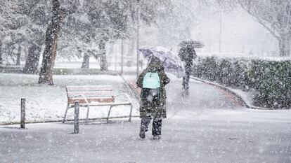 Penúltimo día del temporal invernal que está azotando España desde el lunes y que empezará a remitir a partir del mediodía de este jueves, subraya Rubén del Campo, portavoz de la Agencia Estatal de Meteorología (Aemet). La causa de la mejoría es la “entrada por el oeste de un frente cálido, de una masa de aire más templada” que la del martes y el miércoles, que era ártica, es decir, del Polo. Las temperaturas máximas subirán, lo que elevará la cota de nieve hasta los 1.400 metros en el tercio norte ―Galicia, comunidades cantábricas, norte de Castilla y León, La Rioja, Navarra, norte de Aragón y norte de Cataluña―. El miércoles, la cota en esta zona estaba a tan solo 300/400 metros, lo que dejó copiosas nevadas. El problema es que seguirá lloviendo en ese mismo tercio y lo hará sobre la nieve, por lo que el peligro serán los deshielos y las crecidas de los cauces. En el resto del país no se esperan apenas precipitaciones, pero continuará el viento, el frío y la mala mar.