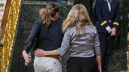 Quedaban apenas cinco minutos para las nueve de la noche, unos 15 para la votación de la propuesta socialista registrada un mes antes. La vicepresidenta Yolanda Díaz había entrado al hemiciclo tras asegurar que el Gobierno nunca debió “llegar hasta aquí”, un lamento sobre la división que ya había quedado patente en el debate parlamentario. La titular de Trabajo dejó el bolso en su escaño, se dirigió a Montero, la agarró por la cintura y salió con ella para mantener un breve encuentro en el Escritorio del Reloj, uno de los salones del Palacio de Las Cortes. Las cámaras captaron el momento y reporteros gráficos y redactores aguardaron con expectación en el pasillo el desenlace de las conversaciones.