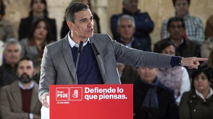 El mandatario ha intervenido esta tarde en un acto de los socialistas burgaleses, en su segunda visita a la comunidad esta misma semana tras acudir el lunes a Segovia. En ambas ciudades el PSOE ostenta la alcaldía y las encuestas marcan igualdad entre los contendientes. Sánchez ha destacado que los indicadores “sonríen a España más que a ningún otro país europeo” y ha ensalzado los datos de empleo, que en el último mes ha rozado los 20,5 millones de cotizantes, una cifra en máximo histórico. Además, el paro de marzo se ha situado en mínimos de los últimos 15 años y se ha apoyado en la creación de un 50% de contratos indefinidos, registro poco común en España, donde la temporalidad ha llegado a protagonizar el 90% de los contratos laborales. El alto cargo se ha mostrado “orgulloso” de esta dirección y ha agradecido un “éxito” correspondiente a empresas, trabajadores o autónomos pese a los “agoreros de siempre”, en alusión a la derecha. El secretario general socialista ha reivindicado “el crecimiento económico, la creación de empleo y la paz social” como obra de su Ejecutivo.