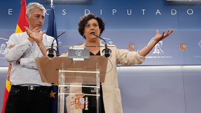 Los negociadores de ERC y Bildu han acudido este viernes al Congreso para cerrar los últimos detalles y anunciar el acuerdo. “Todos los alquileres que se encuentren en áreas tensionadas serán regulados y topados, sean propiedad de grandes tenedores o de pequeños propietarios”, han asegurado la diputada del Grupo Republicano, Pilar Vallugera, y el portavoz adjunto de EH Bildu en el Congreso, Oskar Matute, que han cerrado la negociación. Esta escenificación es importante, porque quita todo el protagonismo al PSOE, pero también a Unidas Podemos, que convirtió esta ley en un asunto central de su estrategia política, y se lo da a los dos grupos que son imprescindibles para sacar adelante la norma. “Serán los 18 votos de ERC y EH BIldu los que permitan hacer realidad esta ley de vivienda”, han insistido Vallugera y Matute.