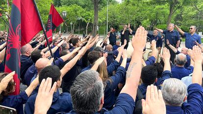 El acto ha terminado con el Cara al sol y los gritos de “José Antonio, presente” y “España una, España grande y España libre”. Menos de dos horas después de la convocatoria, los falangistas se quitaron las camisas azules con el yugo y las flechas, las metieron a una bolsa y se disolvieron en calma.