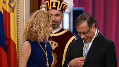 Gustavo Petro está realizando estos días una visita de Estado a España en la que se contemplan varios actos institucionales. La anterior visita de ese calibre la había realizado en noviembre de 2021 el presidente italiano, Sergio Mattarella. La presidenta del Congreso, la socialista Meritxell Batet, ha trasladado a Petro en su discurso de bienvenida su deseo de que “su empeño en alcanzar la paz total sea un logro efectivo en beneficio de todos los colombianos”, ha hablado de los retos, valores y amenazas comunes y ha concluido que los desafíos reformistas son semejantes para “robustecer la democracia” y deberían consistir en “consolidar la paz, profundizar la democracia, garantizar la equidad y proteger el medio ambiente”.