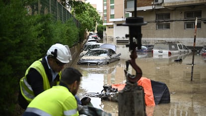 A unos pocos metros, Carmen Obando no ha podido siquiera abrir la persiana de su bar. El agua ha doblado la chapa y el sistema eléctrico no funciona. “No queremos ni imaginar lo que nos encontraremos dentro”, dice, mientras espera a la llegada de un cerrajero. En pijama y botas de agua, Beatriz Pardo saca agua de su coche; todavía no se ha atrevido a arrancarlo; es la segunda vez que está en esta situación y, “dentro de lo malo, esta vez ha sido menos”, porque su casa, dice, no ha quedado afectada, más allá del agua que ha entrado en el portal del edificio. Se queja de que “con cuatro gotas” el barrio queda anegado. Esta noche no ha pegado ojo, ha grabado con su móvil cómo el agua iba subiendo de nivel por su calle a medida que pasaban las horas.
