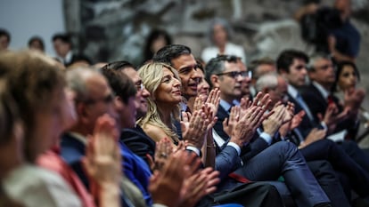 Hay un elefante enorme en la habitación, las elecciones del 23 de julio, que pueden trastocar todos los planes si hay un cambio de Gobierno, pero el equipo que lleva meses preparando la presidencia española del Consejo Europeo, que empieza el 1 de julio, intenta trabajar como si no existiera. Y Pedro Sánchez, el presidente, que tenía muchas esperanzas políticas puestas en esta presidencia antes de que el mal resultado de las municipales le forzara a adelantar las generales, también ha intentado apartar ese elefante durante la presentación del logo y las líneas maestras de la presidencia este jueves en La Moncloa, con buena parte de su Gobierno en primera fila ―incluida la vicepresidenta segunda y líder de Sumar, Yolanda Díaz― y varios embajadores europeos. Sánchez asegura que la UE está acostumbrada a que haya elecciones durante las presidencias, que ya pasó en Francia, y no la alteró, y también en Suecia, donde cambió el Gobierno justo antes de que empezara. Sin embargo, las líneas maestras de los objetivos de esta presidencia, según explicó Sánchez, contienen algunos elementos que difícilmente serían prioritarios con un Ejecutivo del PP y Vox en La Moncloa.