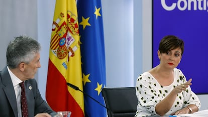 Vox ha sido el gran protagonista de la rueda de prensa posterior al Consejo de Ministros. Marlaska también ha criticado la gran lona que ha puesto la formación de extrema derecha en el centro de Madrid en la que tira a la basura los símbolos del feminismo o la bandera arcoíris del colectivo LGTBI. ¿Eso puede ser delito de odio?, le han preguntado. “Arrojar un símbolo a una papelera es todo menos generar convivencia. No me corresponde [decidir] si es delito de odio, pero no ayudan nada para respetar la diversidad. Pueden ayudar a otros discursos todavía más incendiarios”, ha rematado.