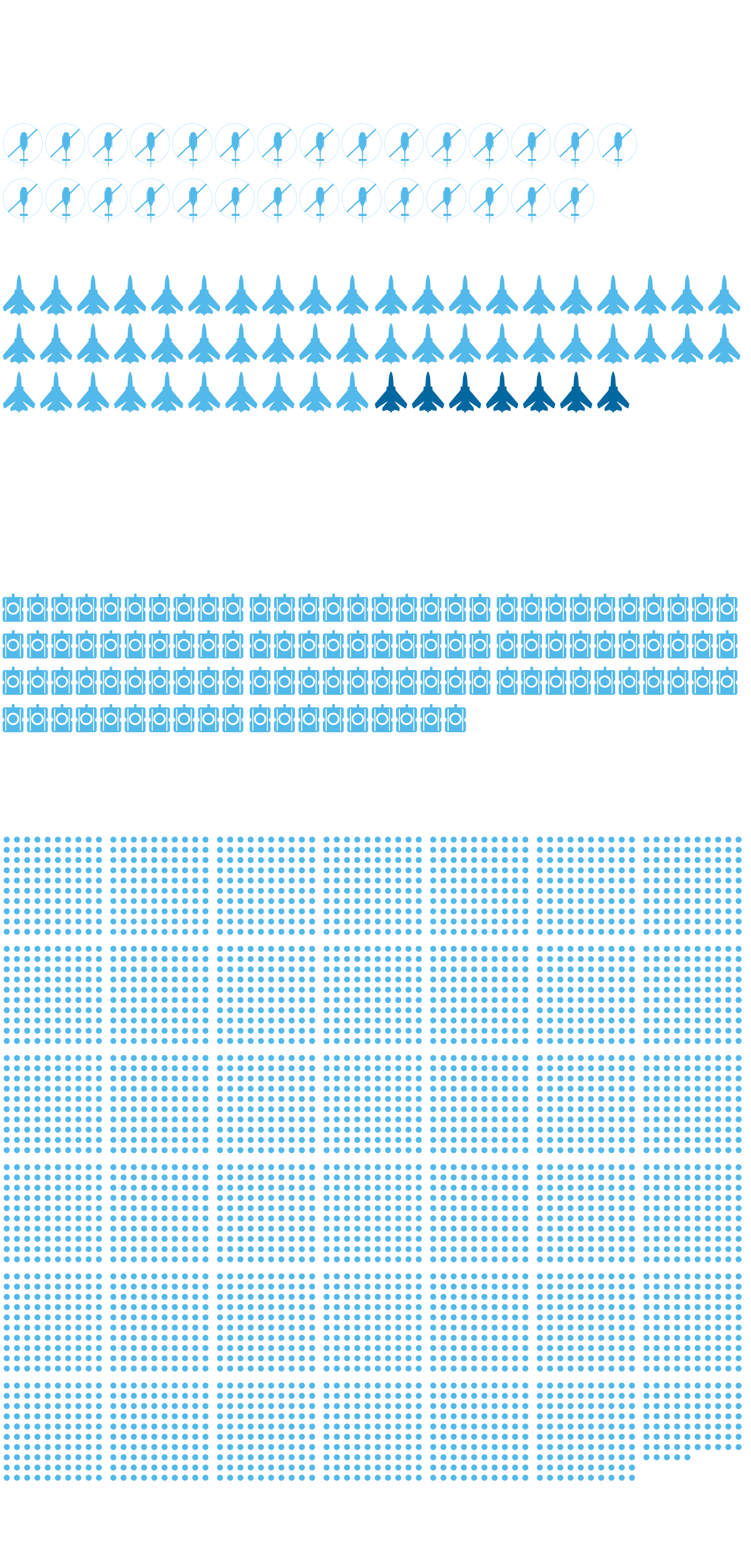 En total han desfilado 4.175 efectivos de los tres ejércitos, la Guardia Civil, el Cuerpo Nacional de Policía, Vigilancia Aduanera y Protección Civil. En el desfile aéreo participan 86 aeronaves (57 aviones y 29 helicópteros); en el motorizado, 142 vehículos (incluidas 33 motos); y en el equino, 120 caballos. Las cifras son similares a las del año pasado, al igual que la longitud del recorrido: poco más de 1,5 kilómetros.