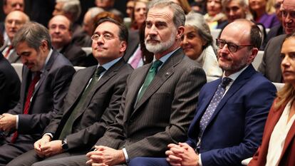 Como ha hecho en sus últimos discursos, ha vuelto a referirse al 45 aniversario de la Constitución, que se cumplió el año pasado, aunque esta vez para recordar que la ley fundamental manda promover las relaciones con la comunidad iberoamericana, un mandato que asume personalmente el Rey, quien este fin de semana viajará a Guatemala para la toma de posesión del presidente Bernardo Arévalo. “La defensa de la democracia y del Estado de Derecho son señas de identidad de esa comunidad que estamos construyendo juntos. Se trata de cualidades muy necesarias y oportunas en estos tiempos en los que internacionalmente se debate sobre la vigencia de esos valores”, ha dicho. También ha hecho hincapié en el enorme potencial del español, un idioma que hablan casi 600 millones de personas, y se ha felicitado de que el Instituto Cervantes haya recuperado ya la cifra de alumnos anterior a la pandemia.