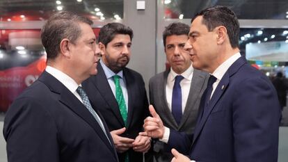 Emiliano García-Page, presidente de Castilla-La Mancha, se ve cada vez más fuera de su propio partido, hasta el punto de pensar que en el PSOE lo quieren echar. Durante un encuentro informal en Fitur este miércoles con los presidentes autonómicos de Andalucía, Murcia y Comunidad Valenciana, todos del PP, les confesó que cree que el partido está “a punto prácticamente” de extraditarle y que la tensión interna se está resolviendo con la vía de “echar a todo dios que se le opone”.