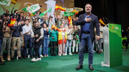 La primera ministra italiana Giorgia Meloni y el presidente argentino Javier Milei han respaldado a Abascal con mensajes grabados en el acto en el que se ha entronizado al frente de Vox por cuatro años más. La líder de Fratelli d’ Italia le ha instado a prepararse ante la “muy importante cita” de las elecciones europeas del próximo 9 de junio, “para dar por fin a la Unión Europea el cambio de rumbo que esperábamos desde hace tiempo”. Por su parte, el nuevo presidente argentino, que se ha definido a sí mismo como “liberal libertario”, ha llamado a su “queridísimo amigo” Abascal “a no bajar los brazos, a seguir peleándola porque somos pocos pero buenos los que peleamos por la vida, la libertad y la propiedad”.