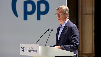 Feijóo ha enfriado, por otro lado, un posible acercamiento de Junts al PP y ha negado que los populares preparen una moción de censura contra el Gobierno de Pedro Sánchez, una posibilidad que él mismo alentó durante la campaña electoral de las europeas con el objetivo de aumentar el nerviosismo en el PSOE. El líder del PP ha reconocido hoy que no le dan los números para censurar al Ejecutivo y que no está buscando apoyos. “Yo no tengo números para sacar una moción en censura, lo reconozco. Lo cual no significa que, si consideramos oportuno en un momento de la legislatura, en los próximos meses, presentarla, pues, por supuesto, no desechamos hacerlo”, ha apuntado Feijóo. “No estoy buscando apoyos, entre otras cosas, porque el único apoyo que puedo tener es de los independentistas, y yo no le voy a dar a los independentistas lo que Sánchez les da”.